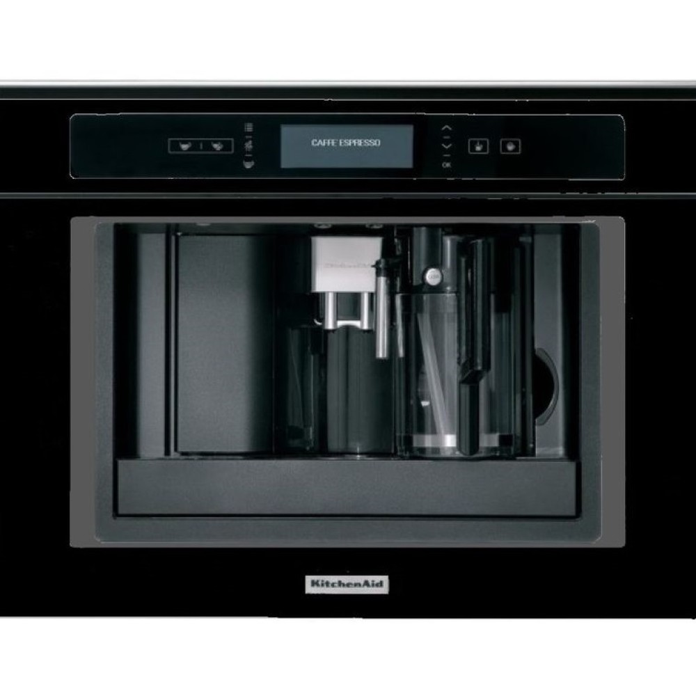Встраиваемая кофемашина в черном цвете от Kitchen Aid с электронной системой управления и ЖК-дисплеем. Автоматические функции приготовления капучино и эспрессо делают приготовление быстрым. Кофемолка имеет 7 степеней помола зерен, 3 уровня температуры кофе (от 80°C до 85°C) и регулировку жесткости воды, что позволяет приготовить напитки по разным рецептам.