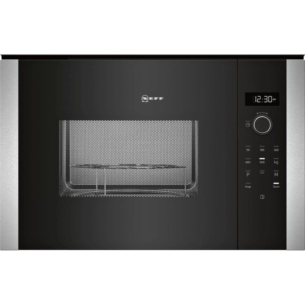 Neff HLAGD53N0 — встраиваемая черная СВЧ-печь с мощным кварцевым грилем. Стильный черный фасад подчеркивается отделкой цвета нержавеющей стали. Навесная дверца удобно открывается нажатием кнопки. Независимое подключение и боковое расположение панели управления не ограничивает высоту встраивания в колонну. Благодаря кварцевому грилю, не занимающему лишнего места, объем камеры достаточно велик — 25 литров. Максимальная мощность микроволн составляет 900 Вт, при этом можно выбирать одну из пяти ступеней мощности, от 10% от максимума. Мощность гриля составляет 1200 Вт: приготовить блюдо с румяной корочкой можно за самое короткое время.