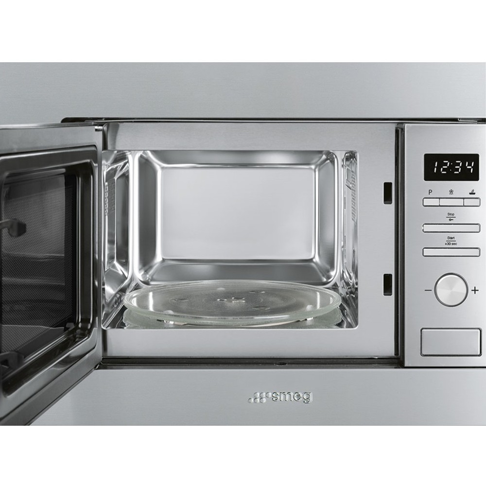 Встраиваемая микроволновая печь в цвете нержавеющей стали с обработкой против отпечатков пальцев. Комфортное управление с помощью поворотного переключателя и кнопок. Предусмотрено 4 функции приготовления и 5 уровней мощности микроволн.