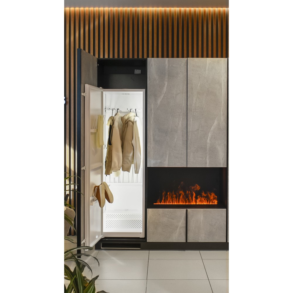Этот шкаф бережно сушит вещи, которые нельзя обрабатывать в традиционной сушильной машине: вечерние платья, кашемир, кожаную обувь, спортивную экипировку и даже аксессуары — от шлемов до сумок. Вертикальное размещение одежды предотвращает деформацию и заломы, а съёмная перфорированная полка легко освобождает пространство под длинные изделия.
