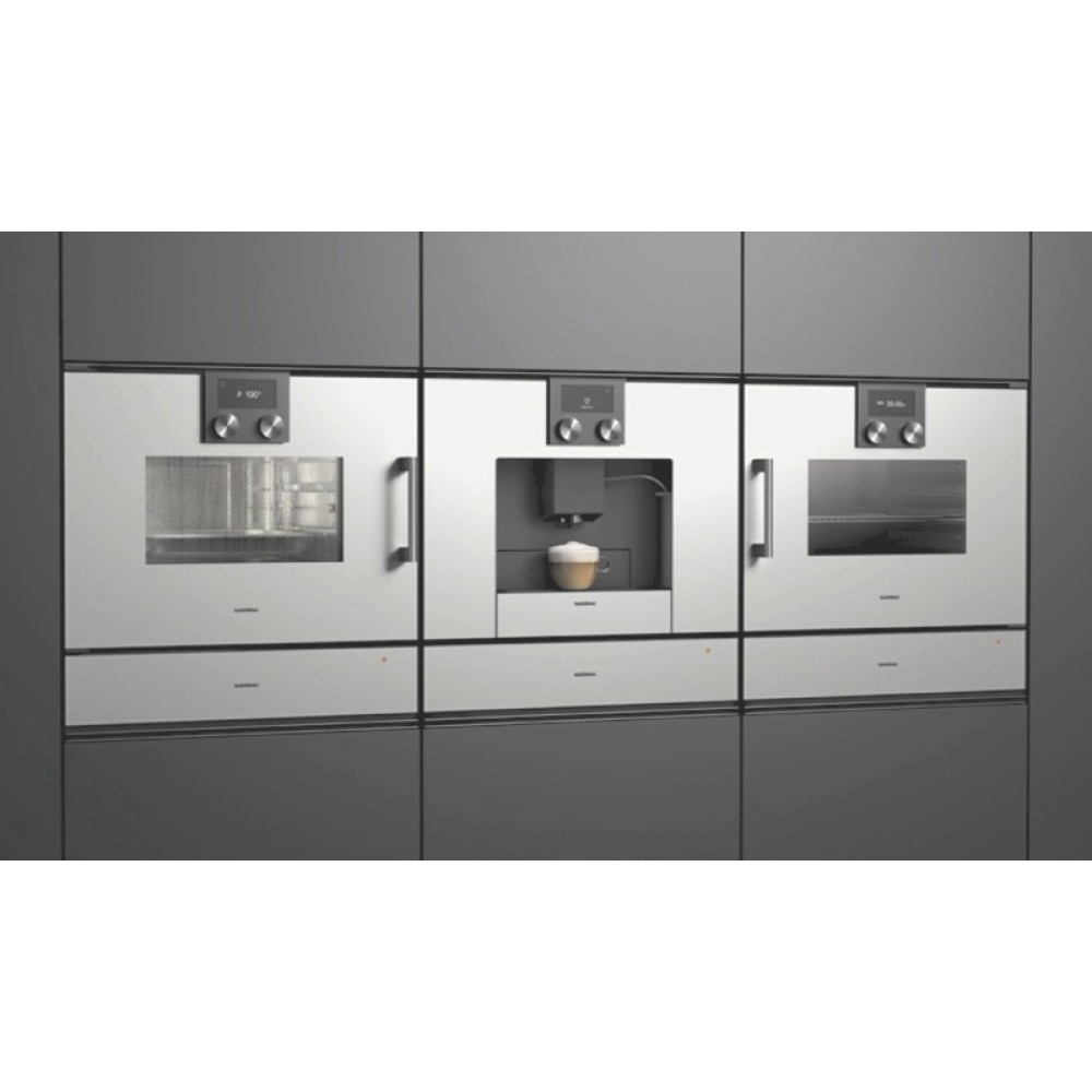 Ящик выдвигается полностью, что дает максимальный доступ к камере, облегчает загрузку и выгрузку посуды. Дверца открывается нажатием на специальную область фронтальной панели — таким образом модель Гаггенау отлично вписывается даже в современный бесшовный дизайн интерьера. Основной материал внутренней поверхности — сталь.