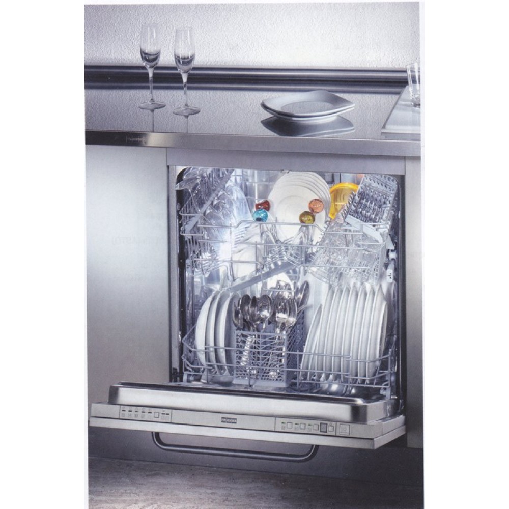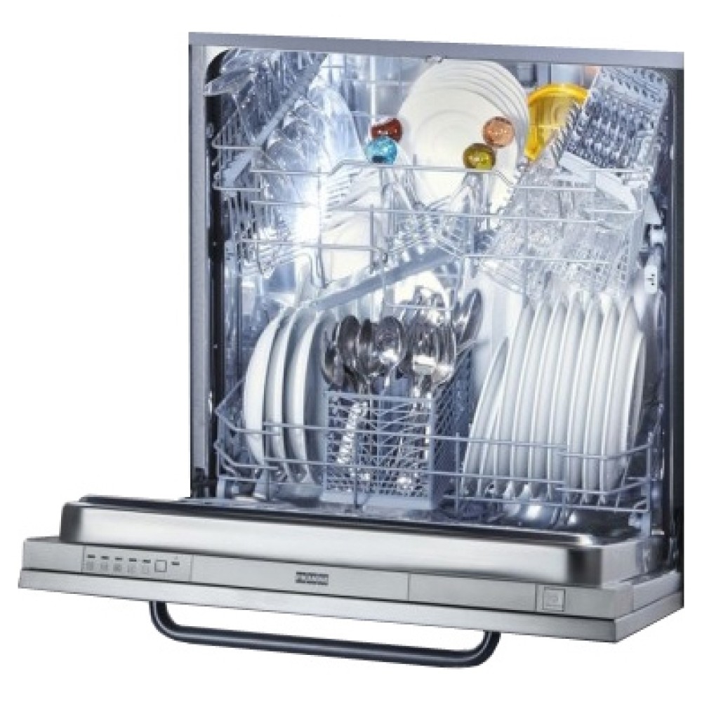 Встраиваемая модель Франке отлично впишется в любой интерьер, главное — правильно выбрать место, чтобы подвести коммуникации. Устанавливается в нишу целиком, полностью закрывается декоративной панелью. Обратите внимание: в комплекте не идет фасад, его необходимо установить самостоятельно. Имеет стандартные размеры, поэтому может не поместиться на очень маленькой кухне. В камеру можно загрузить ограниченное число комплектов: 13 шт. Комплектом считается набор посуды на одного человека, который нужен для полноценного приема пищи: глубокая и плоская тарелки, тарелка для салата, блюдце под чашку, сама чашка, ложка и вилка.