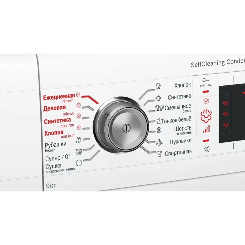 - Дополнительные параметры:Контейнер для конденсата Функция Refresher Большой многофункциональный LED-дисплей с текстовой индикацией параметров выбранной программы и дополнительных функций