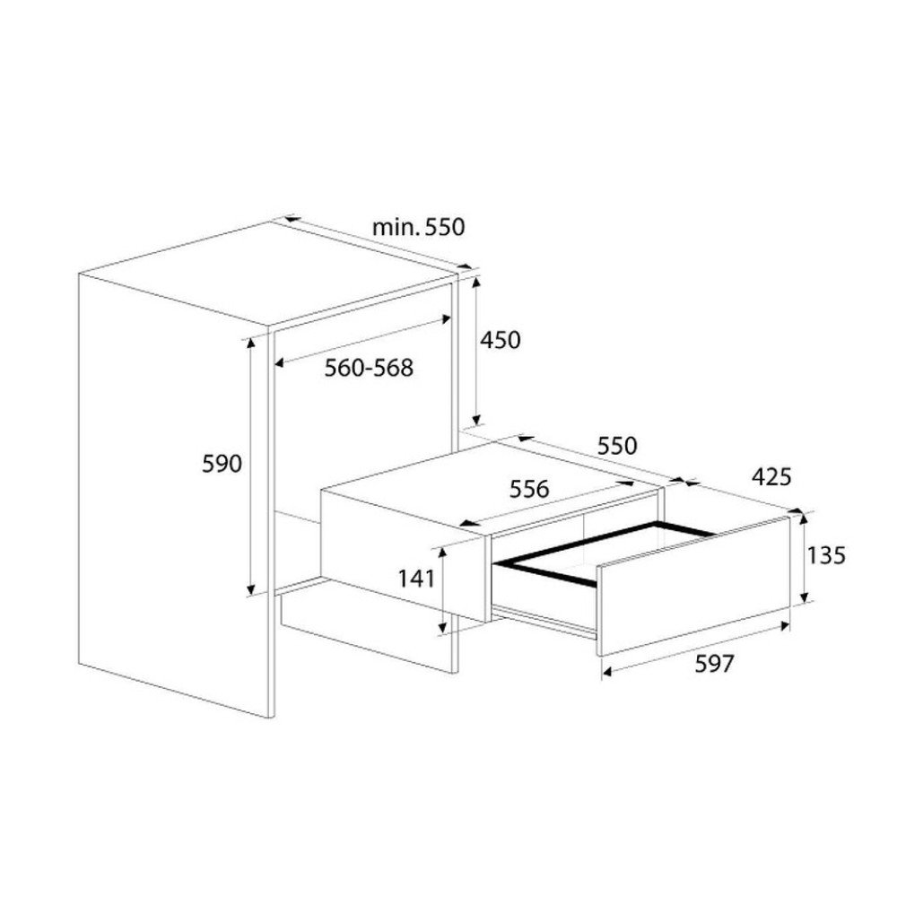 Модель шириной 60 см и высотой 50 см может встраиваться в колонну с другой техникой — например, устанавливаться под духовым шкафом или микроволновой печью. Вакуумная камера объемом 8 литров позволяет запаивать пакеты разного размера: максимальная их величина составляет 25 на 35 см. Если необходимо вакуумировать пакет большего размера, можно воспользоваться функцией внешнего вакуумирования с помощью специального шланга. Вакууматор без ручки открывается нажатием на переднюю панель. Телескопические направляющие позволяют легко выдвинуть ящик. Сенсорная кнопочная панель управления без выступающих элементов позволяет задать уровень вакуума и время герметизации, о выбранных параметрах работы сообщают специальные индикаторы. 3 уровня вакуума предназначаются для разных видов продуктов: низкий для нежных продуктов — хлеба, ягод, фруктов, средний для жидкостей, рыбы, готовых блюд, высокий для твердых и сухих продуктов, мяса, жестких овощей. Можно выбрать также длительность запаивания в зависимости от толщины пакета. Функция сухого прогона позволяет удалить из камеры лишнюю влагу. Отдельный индикатор предназначается для вывода сообщения об ошибке.