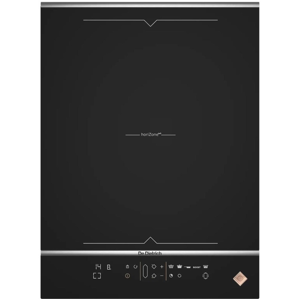 De Dietrich DPI7469XS — узкая варочная панель в дизайне Domino. Модель оснащена двумя индукционными конфорками, которые можно объединить в свободную зону нагрева horiZone. Для контроля времени приготовления предусмотрен электронный таймер. Автоматика распознавания посуды гарантирует комфортную эксплуатацию прибора.