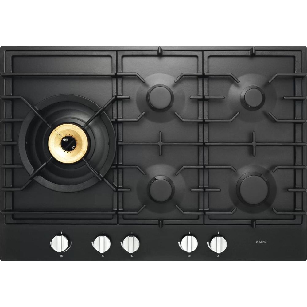 Asko HG1776AB — независимая варочная панель шириной 75 см. Модель предусматривает наличие систем автоподжига и газового контроля. Сверхмощная WOK-конфорка со специальным адаптером позволяет готовить различные блюда в посуде с округлым дном. Эмалированная поверхность цвета антрацит из дизайн-серии Craft оснащена съемными чугунными решетками оригинальной формы. Четыре гибридные конфорки A+ изготовлены из материала Keradur®, очень легкого в очистке. Они расположены высоко над поверхностью, что обеспечивает лучшее поступление воздуха и более ровное пламя. Механическое управление при помощи поворотных регуляторов поможет установить требуемую мощность нагрева. Серебристые ручки не нагреваются при работе панели и могут сниматься для очистки. В комплект входят форсунки-жиклеры для использования газа в баллонах.