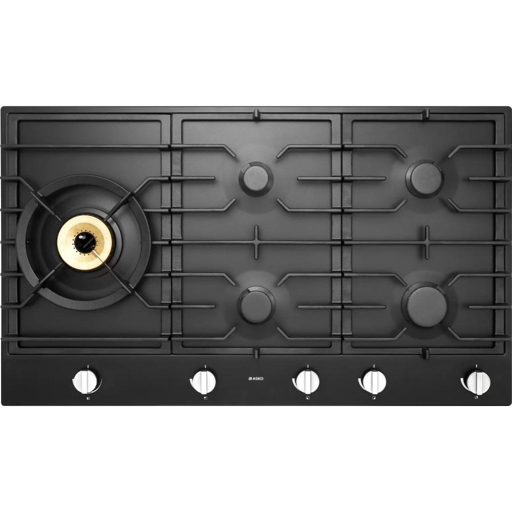 Asko HG1986AB — независимая варочная поверхность с пятью газовыми горелками различной мощности. Панель конфорок с эмалевым покрытием антрацитового цвета дополнена чугунными решетками, прочными и простыми в уходе. Система автоматического электроподжига исключает необходимость использования спичек или зажигалок при эксплуатации модели.