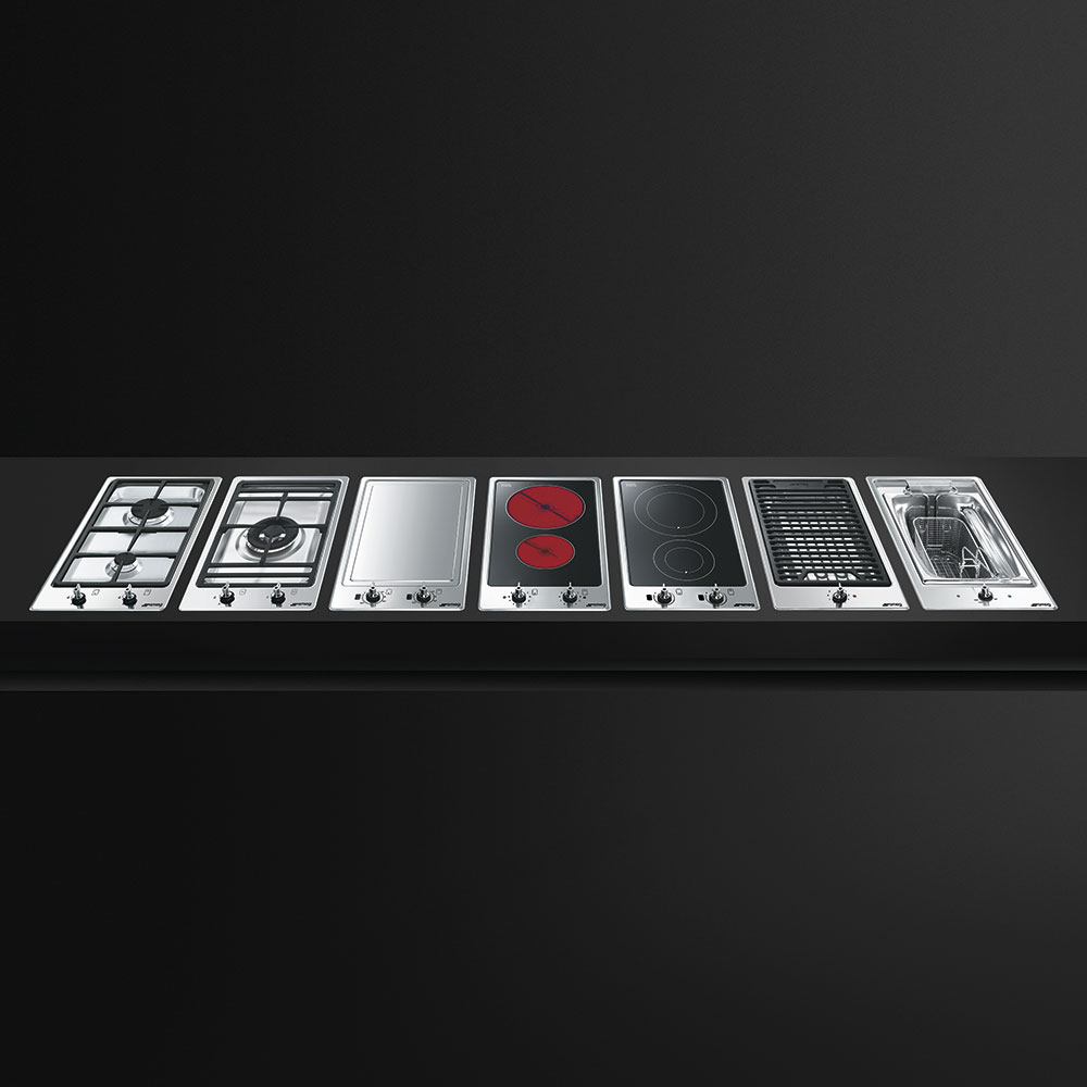 Smeg PGF32G — узкая варочная поверхность с двумя разноразмерными конфорками. Модель выполнена из износостойкой нержавеющей стали и снабжена прочной чугунной решеткой для надежного удержания посуды. Автоматический электроподжиг и газ-контроль гарантируют безопасность при эксплуатации устройства. Поджиг интегрирован в каждую ручку и активируется при ее повороте. Контроль газа защищает от возможной утечки за счет блокировки подачи к работающей конфорке, у которой погас огонь.