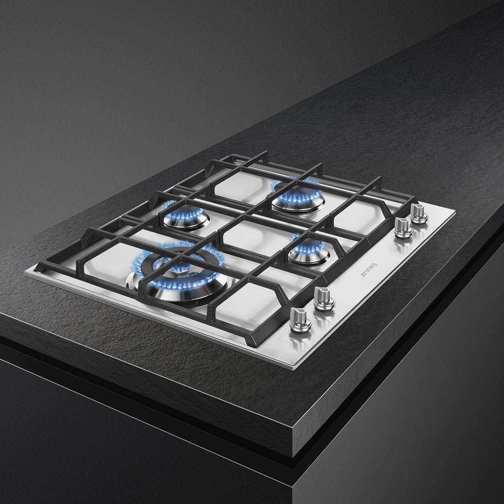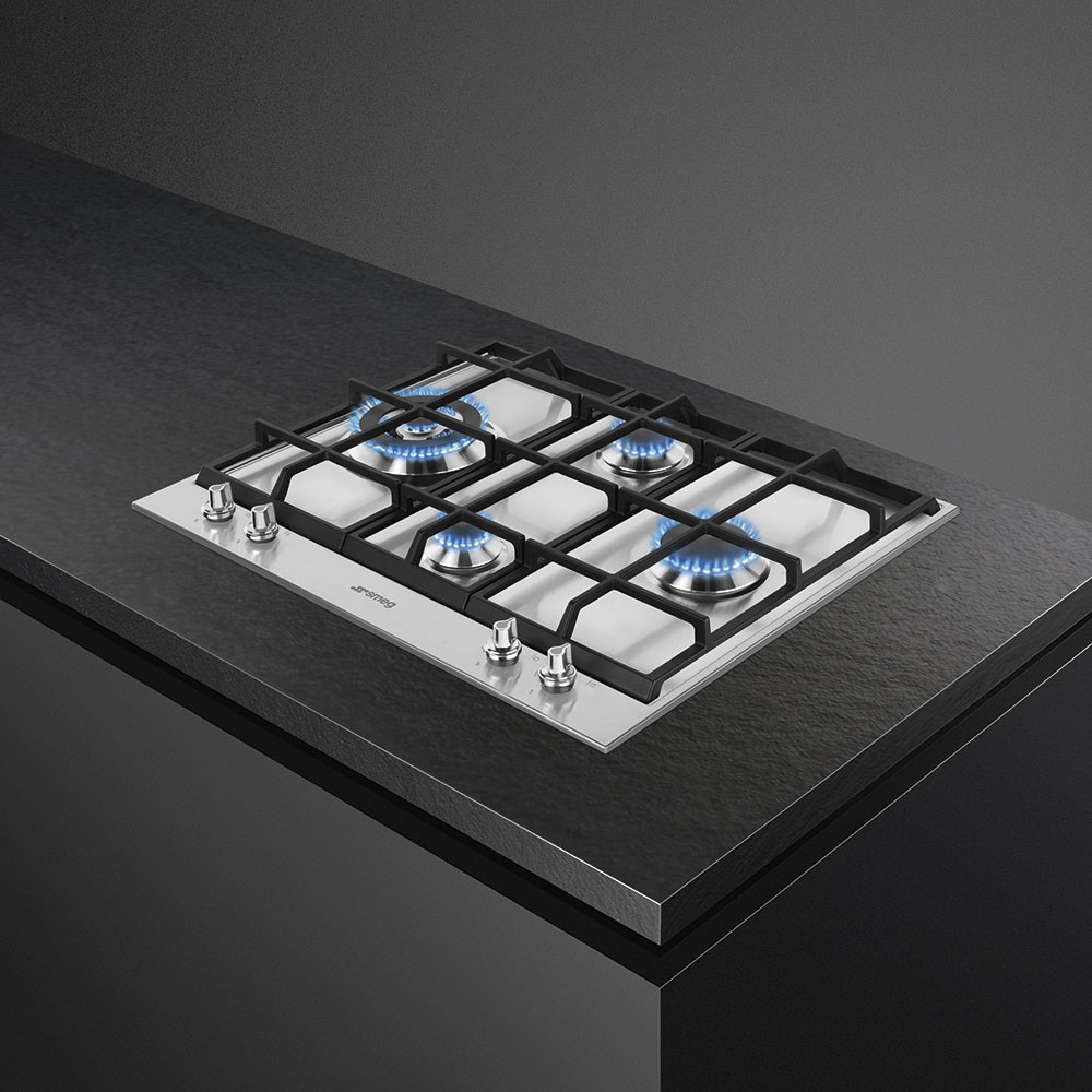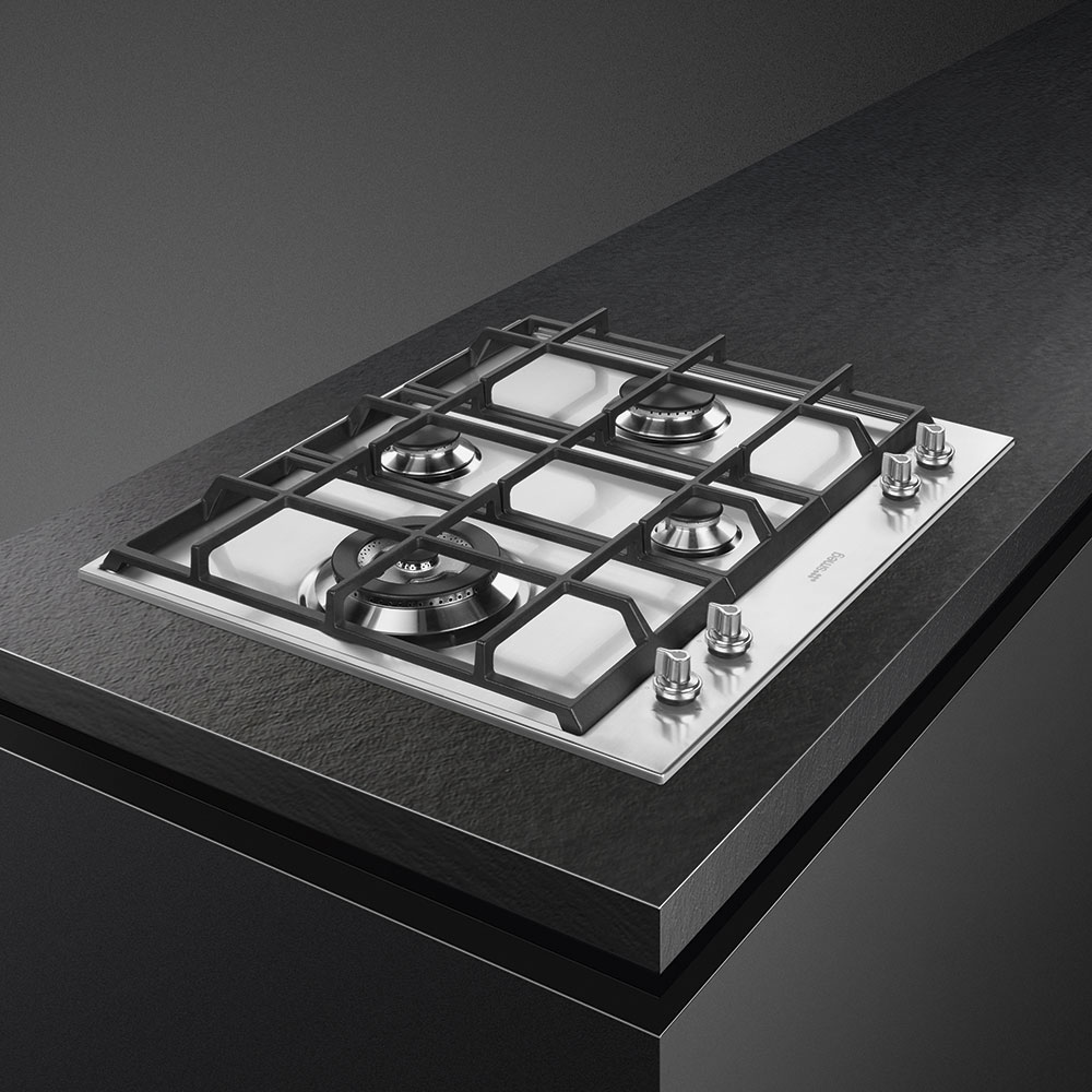 Панель шириной 60 см из дизайн-коллекции Linea в минималистическом стиле отличает необычное расположение четырех конфорок в виде ромба. Такое расположение позволяет удобно размещать посуду и способствует более безопасному использованию. Высота 4,3 см позволит интегрировать ее в столешницу из дерева, камня и других материалов. Поверхность изготовлена из прочной и термостойкой матовой нержавеющей стали, которая уместна в любом интерьере. Горелки Contemporanea из алюминия, декорированные методом сериографии, обеспечивают вертикальное пламя, которое позволяет быстрее нагревать дно посуды. Чугунные решетки легко выдерживают посуду значительного веса и не сдвигаются при помещении на них кастрюль или сковородок. В левой части расположены мощная конфорка ультрабыстрого нагрева с двумя рядами пламени для приготовления блюд азиатской кухни в посуде с округлым дном. Две группы не нагревающихся поворотных переключателей отличает эффектная подсветка. Бесступенчатая регулировка мощности позволяет гибко выбирать интенсивность нагрева. Функция «Газ-контроль» перекрывает подачу газа и предотвращает утечку, если пламя по какой-либо причине погаснет.