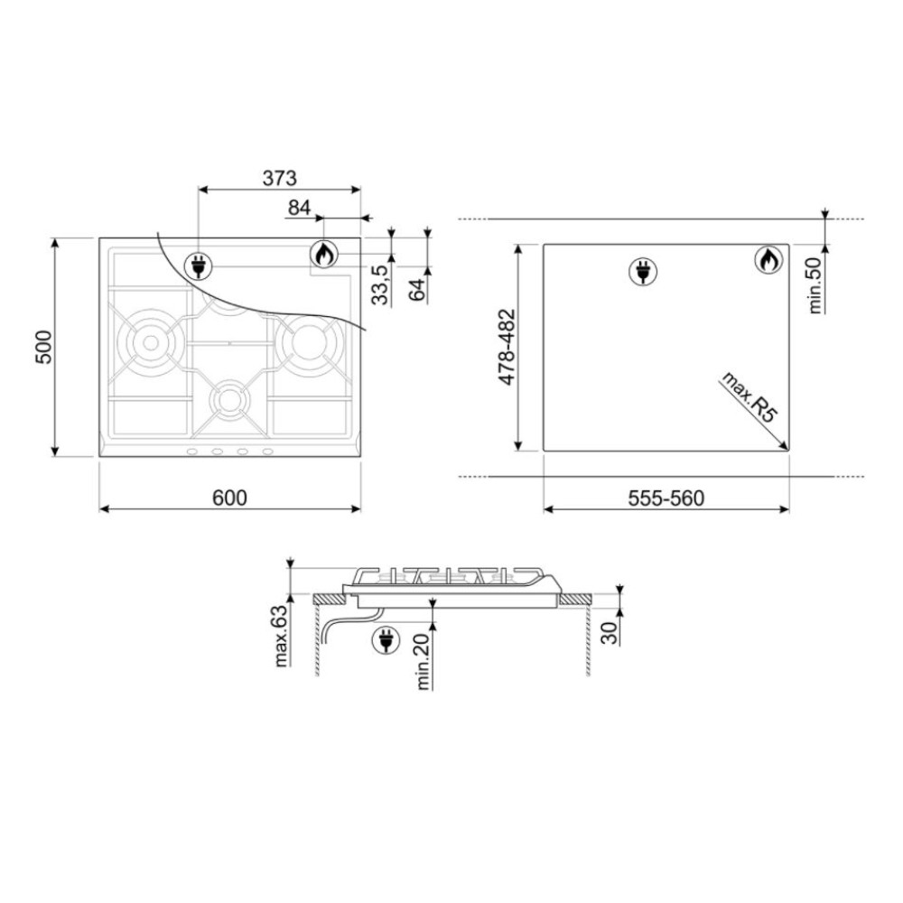 Smeg SER60SGH3 — варочная поверхность из серии Classica с четырьмя газовыми конфорками различной мощности. Модель оборудована чугунной решеткой с шероховатой поверхностью, прочной и простой в уходе. Система автоматического электроподжига гарантирует максимальный комфорт при повседневной эксплуатации устройства. Она встроена в каждую ручку — искра срабатывает при повороте регулятора.