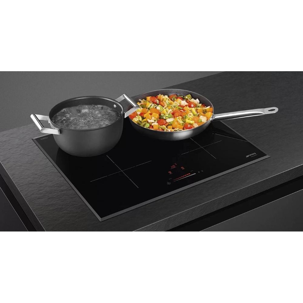 Smeg SI4642B — индукционная варочная панель с поверхностью из черной стеклокерамики. Управление происходит с помощью слайдера Touch control. Мощность регулируется на 9 уровнях, по окончании приготовления звучит акустический сигнал. За безопасность эксплуатации отвечают охлаждающий вентилятор и функции автоматического выключения, защиты от перегрева.