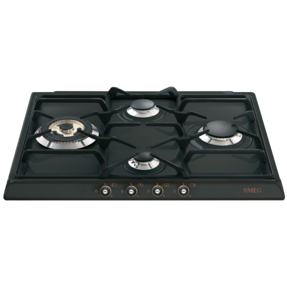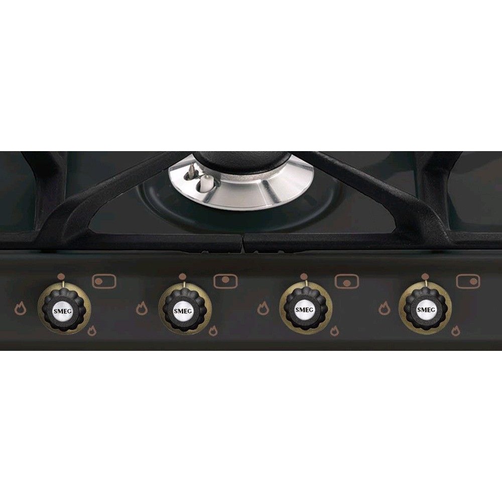 Smeg SR764AO — четырехконфорочная варочная панель с эмалированной рабочей поверхностью в цвете антрацит. Высокопрочные чугунные решетки представляют собой надежную опору даже для крупногабаритной посуды, а система защиты от утечек обеспечивает точный контроль за подачей газа Если пламя у работающей конфорки погаснет — специальные датчики сигнализируют для автоматической блокировки подачи газа. Система срабатывает через несколько секунд, обеспечивая защиту от утечки.
