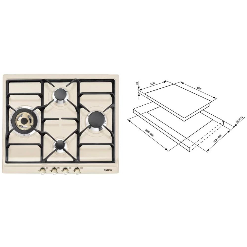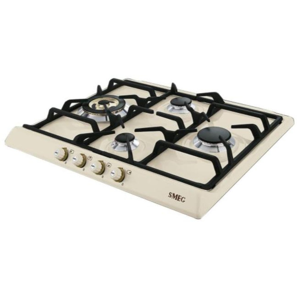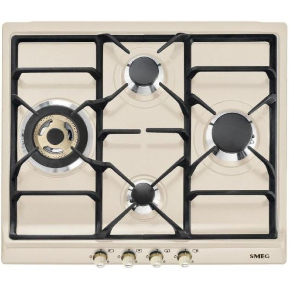 Smeg SR764PO — газовая варочная поверхность с эмалированной панелью конфорок кремового цвета. Модель дополнена чугунными решетками для надежного удержания посуды. Автоматический электроподжиг обеспечивает удобство при активации горелок. Система защиты от утечек гарантирует безопасность при эксплуатации устройства. Принцип работы основывается на блокировке подачи газа при обнаружении отсутствия пламени у работающей конфорки. Система срабатывает через несколько секунд, тем самым исключается риск возможной утечки. Это особенно важно при наличии сквозняков.