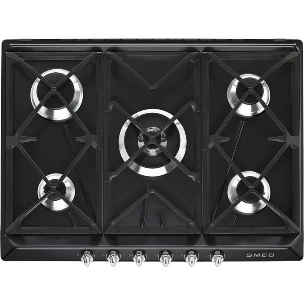 Smeg SR975NGH — независимая варочная панель из коллекции Victoria. Рабочая поверхность модели с черным эмалевым покрытием оборудована пятью газовыми конфорками различного уровня мощности. Для размещения посуды доступны чугунные решетки, прочные и простые в уходе.