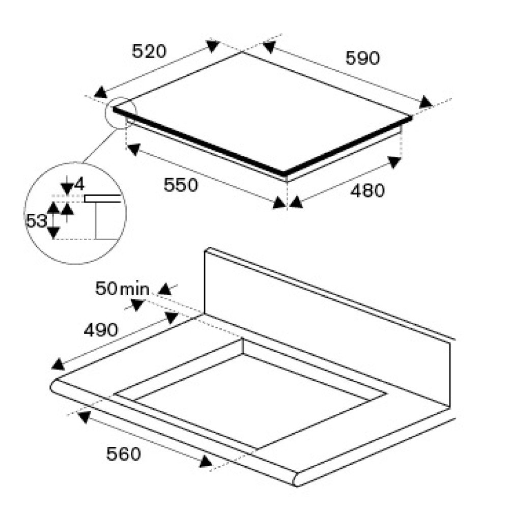 | Задняя левая (мм)210 | Зоны нагреваInduction Multizone | ИндикаторыИндикатор остаточного тепла |