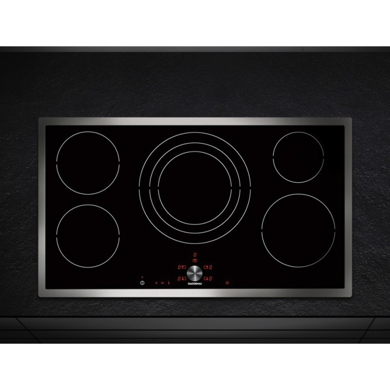 Для того чтобы приготовление вкусных блюд было удобным и безопасным, приобретайте варочную поверхность Gaggenau CI 491-113 из стеклокерамики черного цвета с рамкой из нержавеющей стали и пятью индукционными конфорками (центральная – двухконтурная). Для безопасности в конфорках предусмотрен таймер отключения. Есть меню, память, 17 режимов работы, предусмотрено защитное отключение и индикатор остаточного тепла.