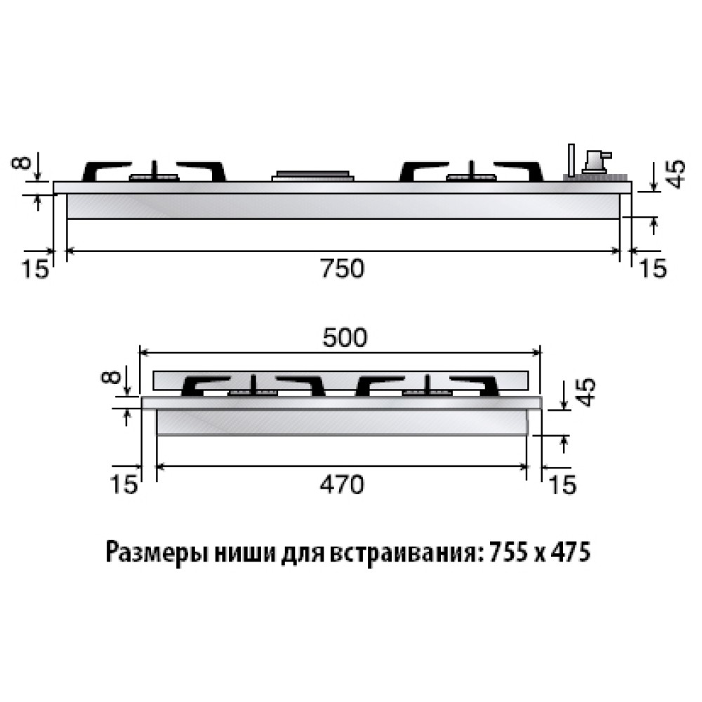 | Газ-контрольДа | Глубина встраивания (см)47.5 | Конфорок газовых5 |