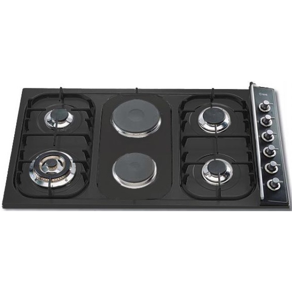 Конструкторы этой итальянской варочной панели оснастили ее двумя электрическими и четырьмя газовыми конфорками, что делает ее очень универсальной. Газовые конфорки этой варочной панели оснащены удобными и надежными чугунными решетками, на которых могут размещаться различные типы посуды для приготовления пищи.