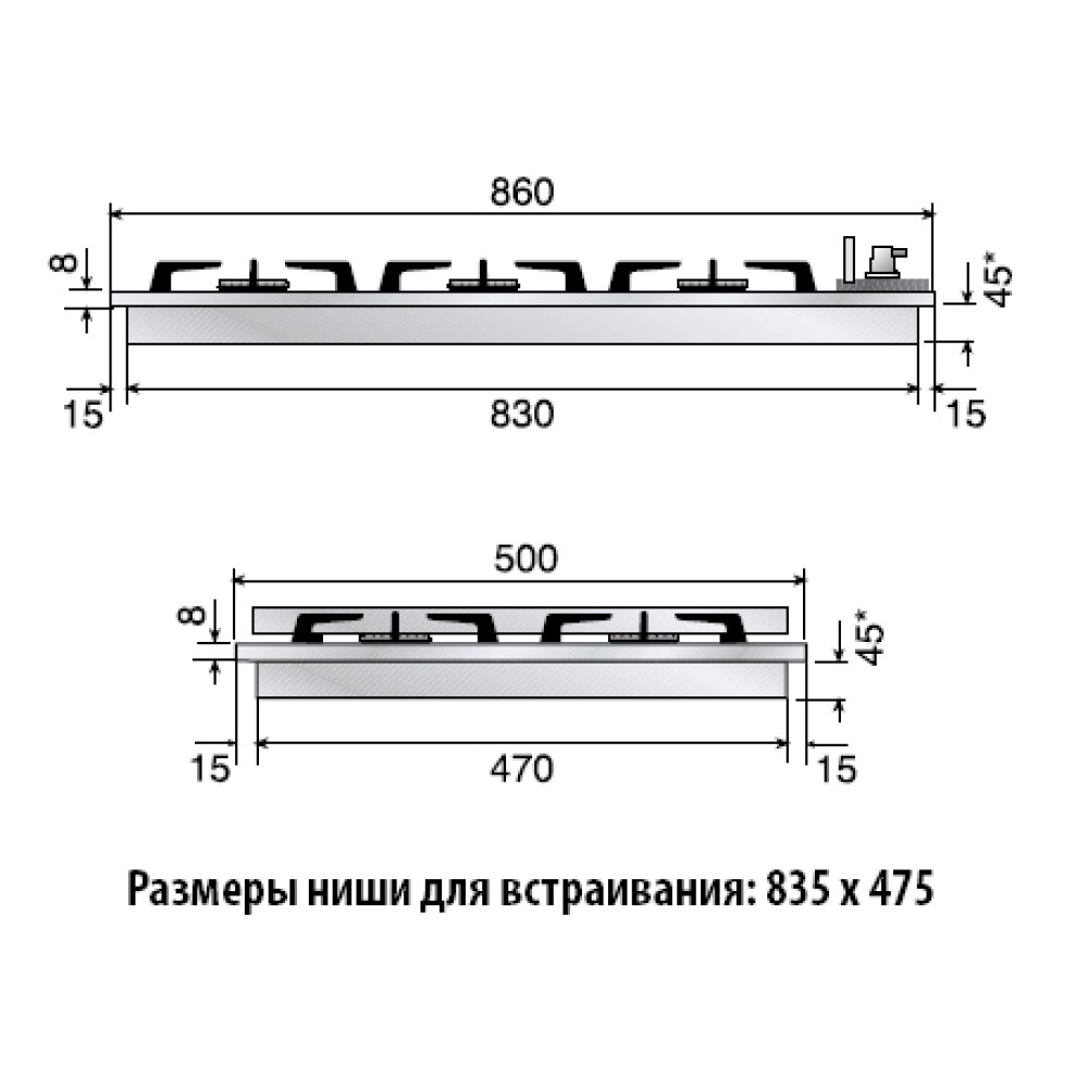 | Газ-контрольДа | Глубина встраивания (см)47.5 | Зоны нагреваКонфорка-гриль |