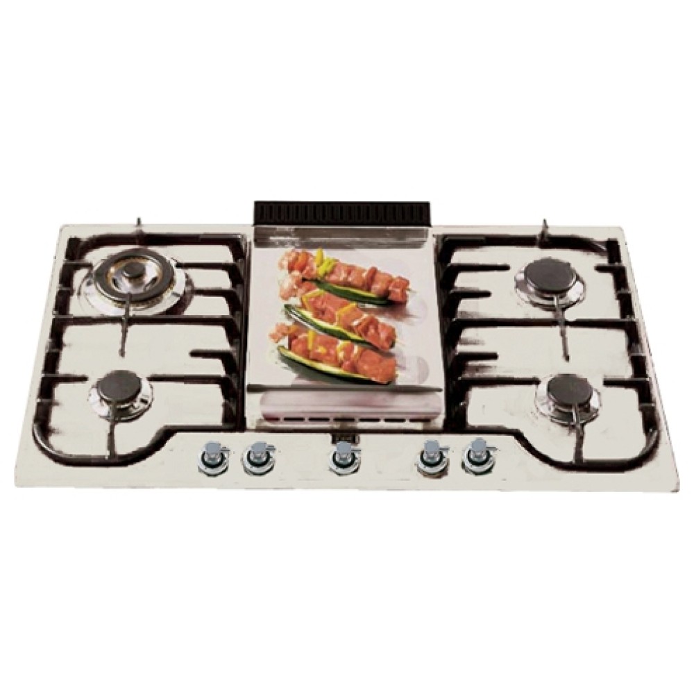 | Дополнительные параметры | 2 маленьких конфорки Ø 55мм 1 большая конфорка Ø 70мм Конфорка Тройная корона Ø 120мм Толстая поверхность из нержавеющей стали (8 мм) для поддержания единой температуры по всей поверхности для натурального приготовления мяса, рыбы, овощей |