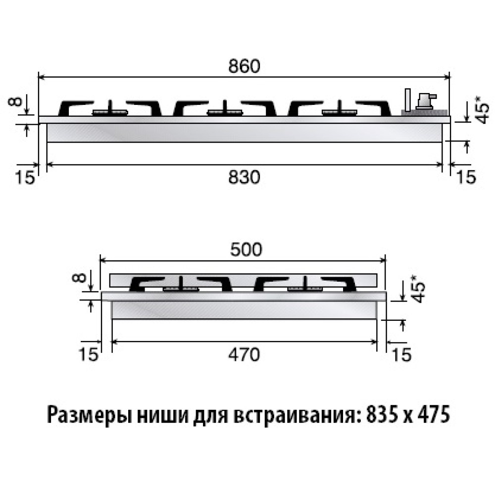 | Газ-контрольДа | Глубина встраивания (см)47.5 | Конфорок газовых5 |
