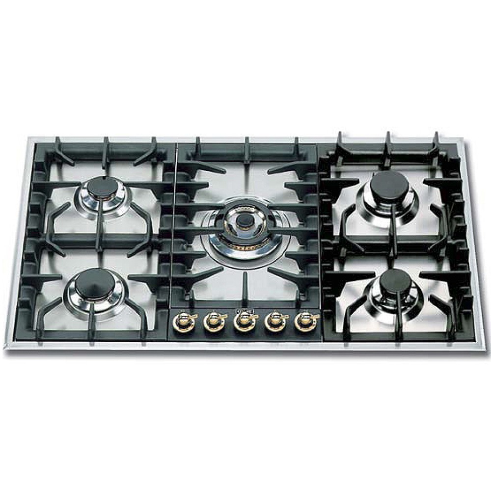 Один внешний вид этой варочной панели уже внушает уважение. Пять газовых конфорок, одна из которых трехконтурная, чугунные решетки и эргономичная панель управления – это те качества, которые делают кухонную плиту не только стильной, но и очень функциональной.