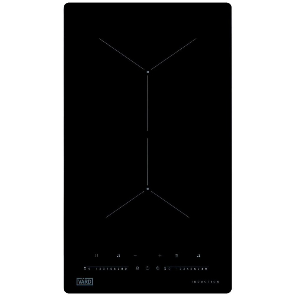 Варочная панель работает на индукционном нагреве — это значит, что повышается температура непосредственно посуды, в которой готовится блюдо. Таким образом промежуточная ступень с предварительным нагревом конфорки пропускается — сокращается время, повышается безопасность. Количество конфорок в этой модели: 2.