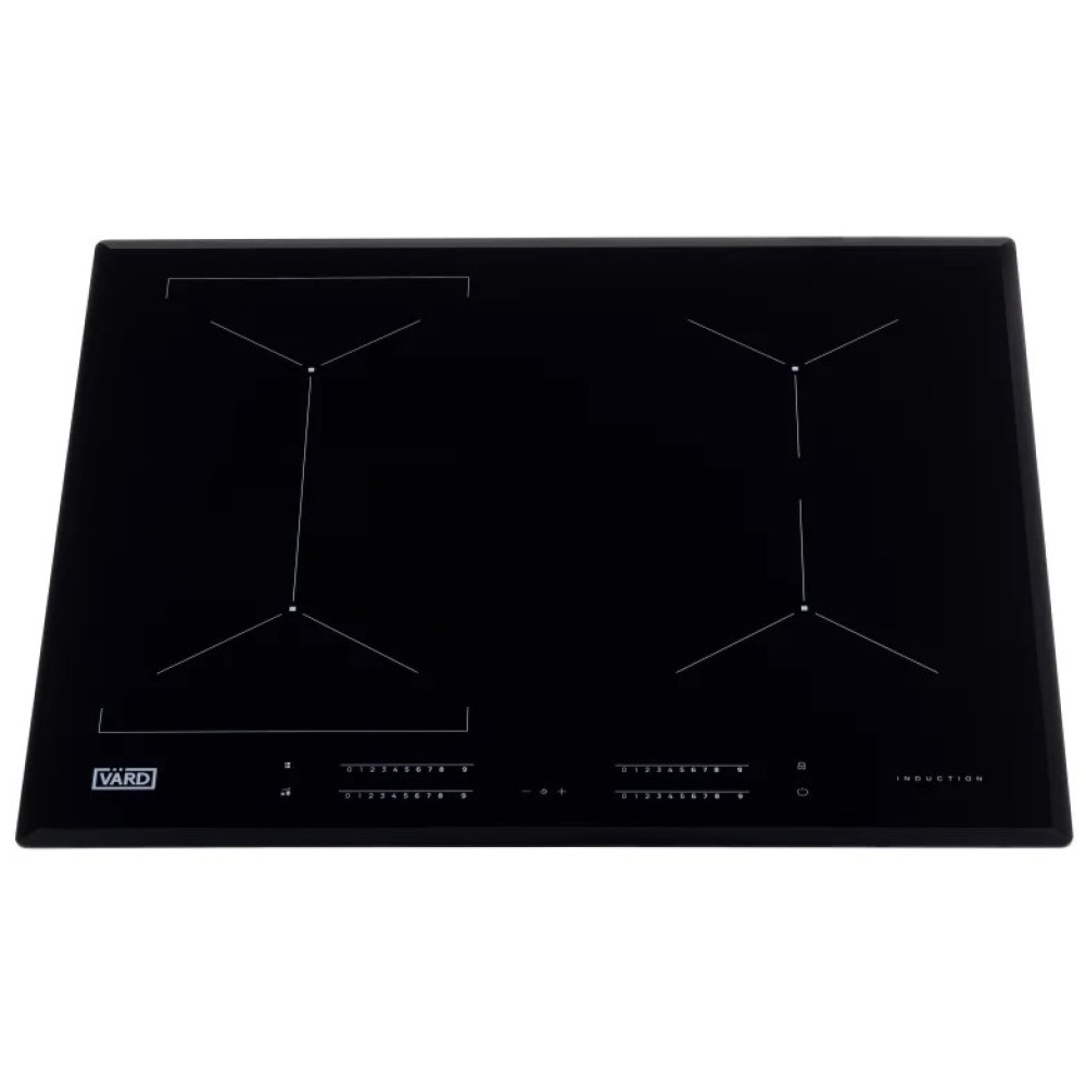 Варочная панель работает на индукционном нагреве — это значит, что повышается температура непосредственно посуды, в которой готовится блюдо. Таким образом промежуточная ступень с предварительным нагревом конфорки пропускается — сокращается время, повышается безопасность. Количество конфорок в этой модели: 4.