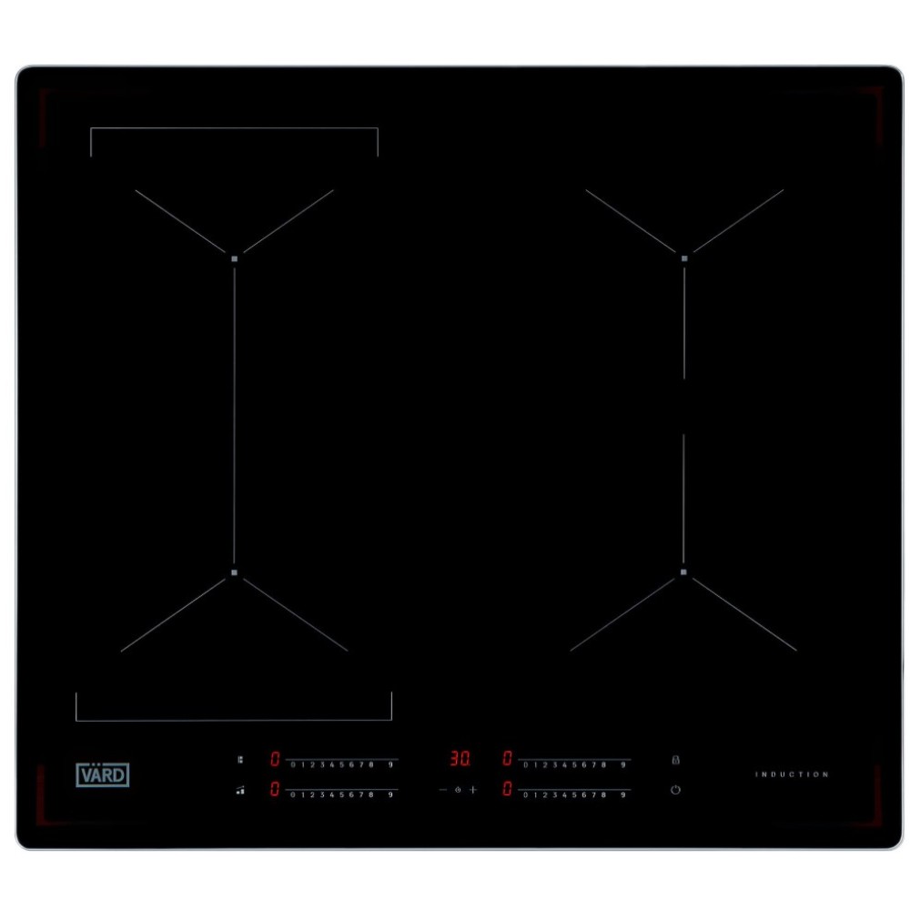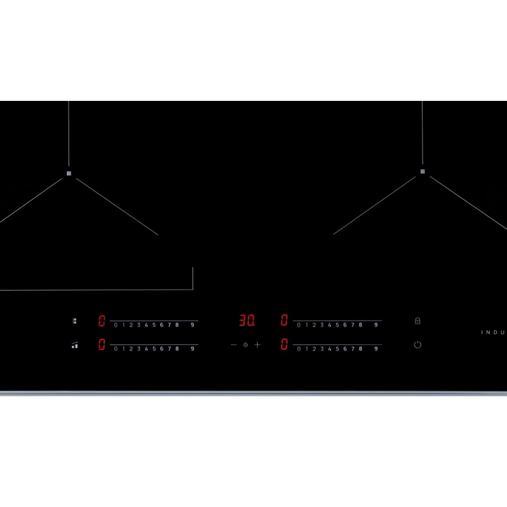 Варочная панель работает на индукционном нагреве — это значит, что повышается температура непосредственно посуды, в которой готовится блюдо. Таким образом промежуточная ступень с предварительным нагревом конфорки пропускается — сокращается время, повышается безопасность. Количество конфорок в этой модели: 4.