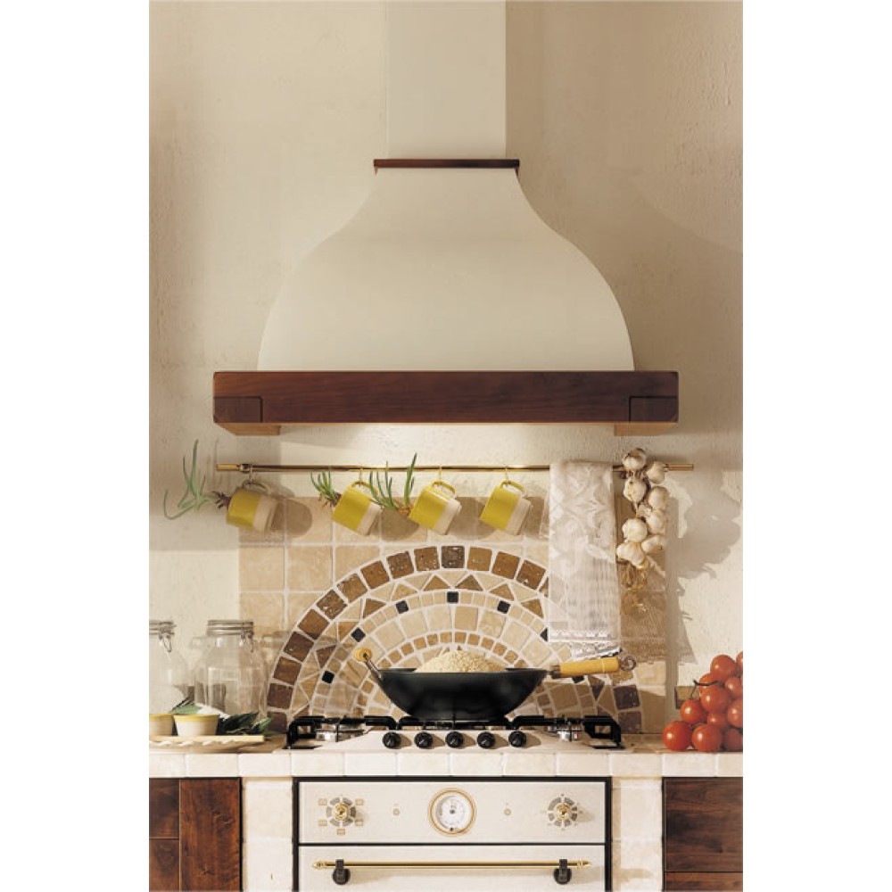 Итальянская вытяжка Falmec Iris Gardenia 120 (600) S выполнена из окрашенной в белый цвет нержавеющей стали со вставками из дерева вишни. Корпус модели имеет форму купола, который придает дополнительное укрепление конструкции. Встроенная подсветка и слайдерная регулировка добавляют комфорт в работе с устройством.