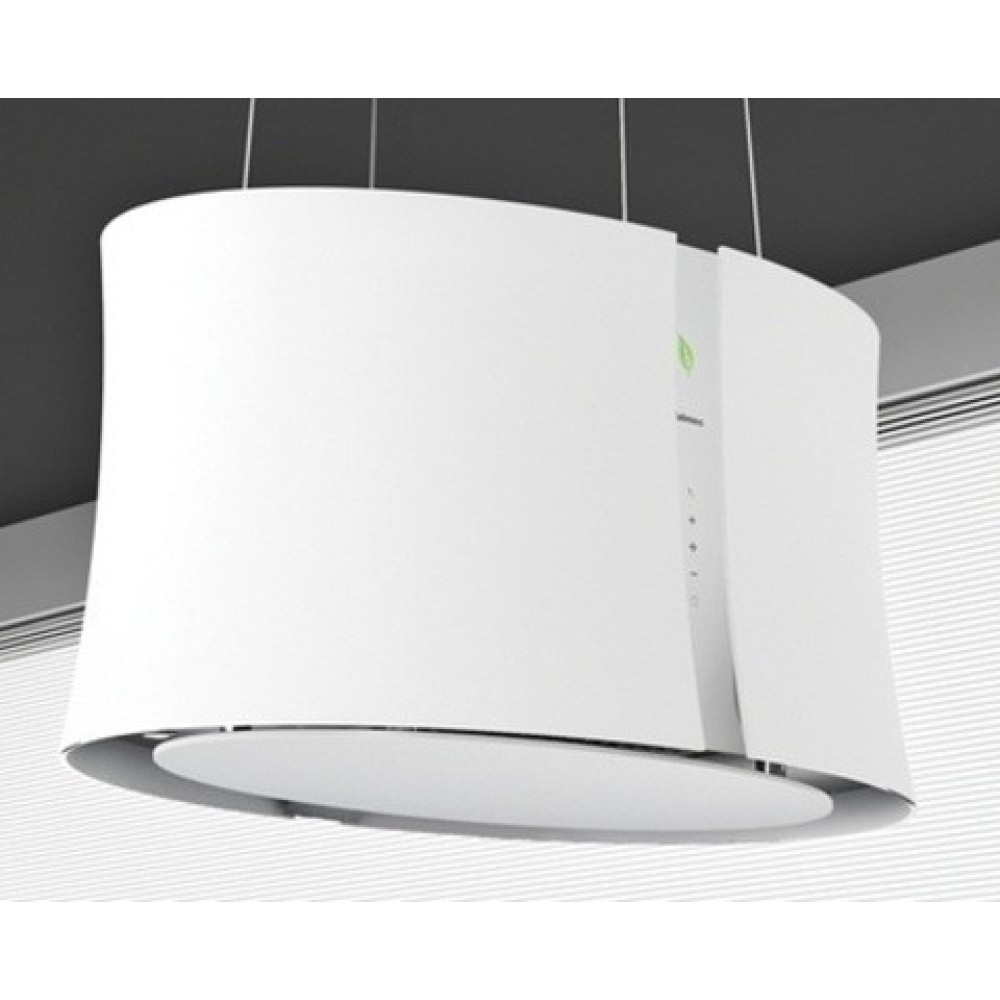 Данная вытяжка выглядит изящной и невесомой за счет свободного пространства между креплением и основным корпусом. Обратите внимание на цветовые сочетания модели Falmec Zephiro isola 66 (450) (с системой E.ion) ECP white, чтобы органично вписать ее в свою квартиру. Оттенок корпуса: белое стекло + нержавеющая сталь. Благодаря лампочкам, которые расположены на нем, можно освещать плиту и столешницу рядом, чтобы готовить было еще проще и приятнее.