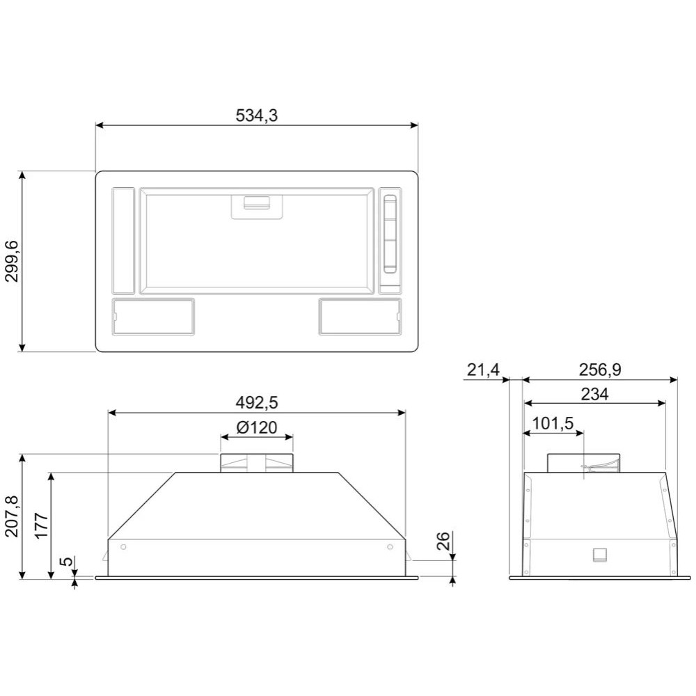 | Возможность установки угольного фильтраДа | Габариты ниши для встраивания (ВхШхГ), см49.25х25.69 | Диаметр воздуховода (мм)120 |
