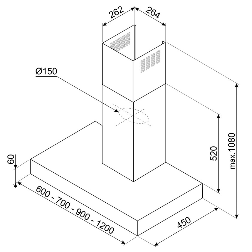 | Диаметр воздуховода (мм) | 150 |
