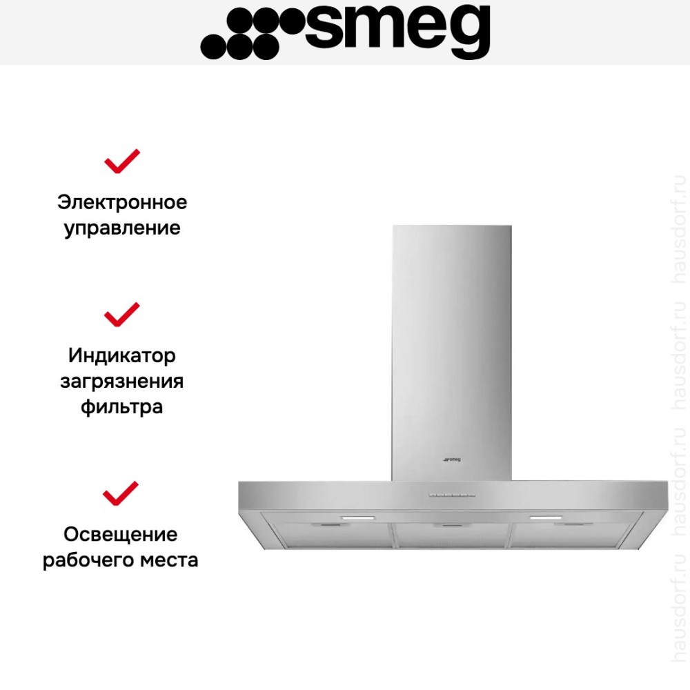 Smeg KBT900XE — настенная вытяжка шириной 90 см. Предусмотрено 3 скорости, благодаря которым можно регулировать работу устройства в зависимости от интенсивности неприятных запахов. Режим 24 часа обеспечивает регулярную рециркуляцию воздуха в помещении в течение 24 часов в сутки.