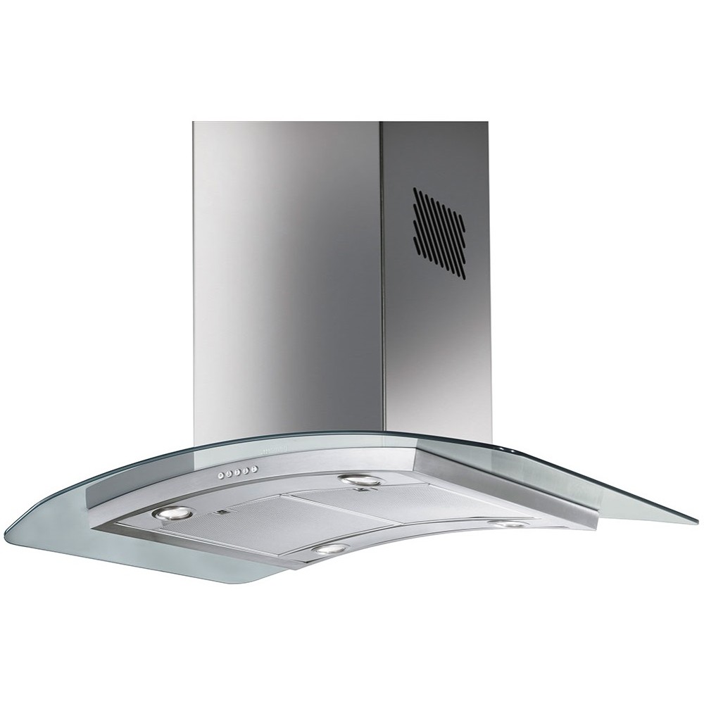 Т-образная модель шириной 90 см оснащена функцией «Остаточный ход», которая продлевает работу вытяжки на 5-15 минут после ее отключения для полного устранения дыма. Кнопочная панель управления расположена на передней части устройства. Производительность на интенсивной ступени составляет 762 м3/ч.
