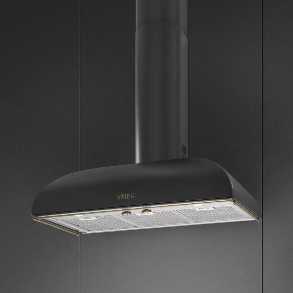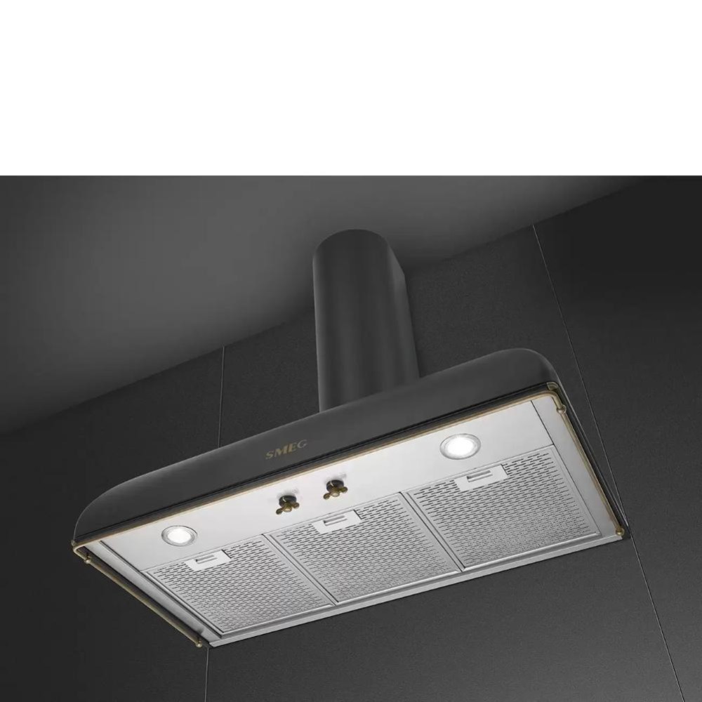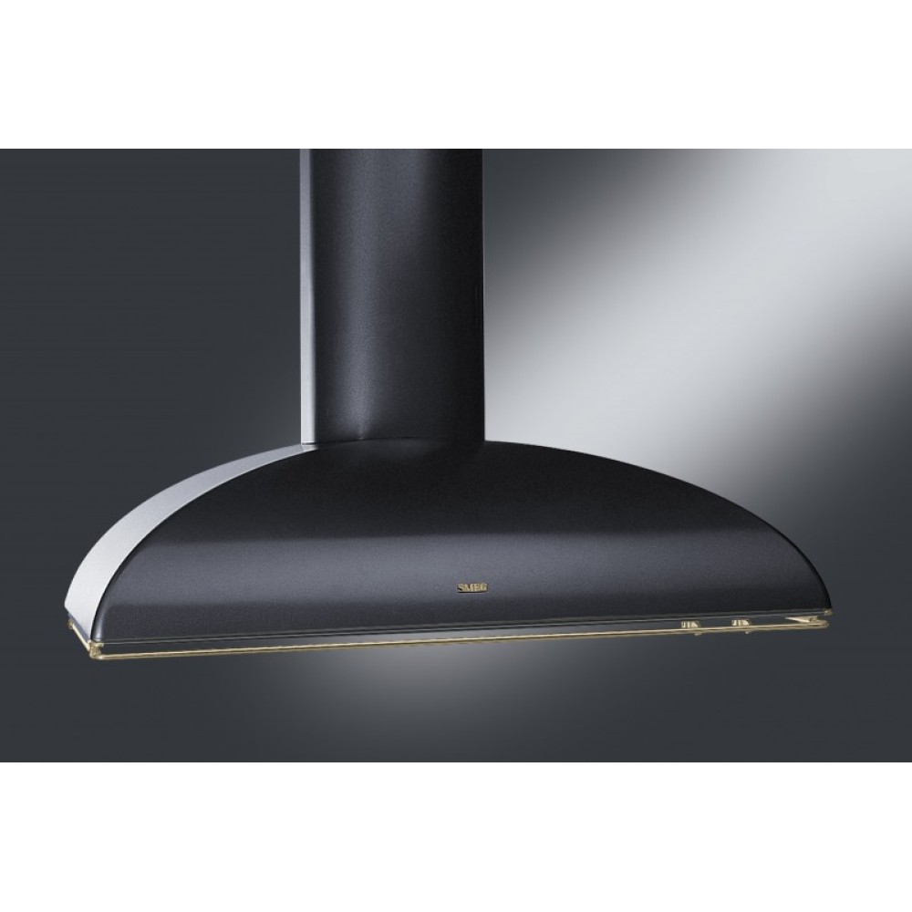 Вытяжка Smeg цвета антрацит в классическом стиле — KS89AE. Латунная фурнитура завершает неповторимый образ итальянской модели воздухоочистителя. 3 скорости работы и дополнительный интенсивный режим, который справится даже с самой сложной задачей по очистке воздуха.