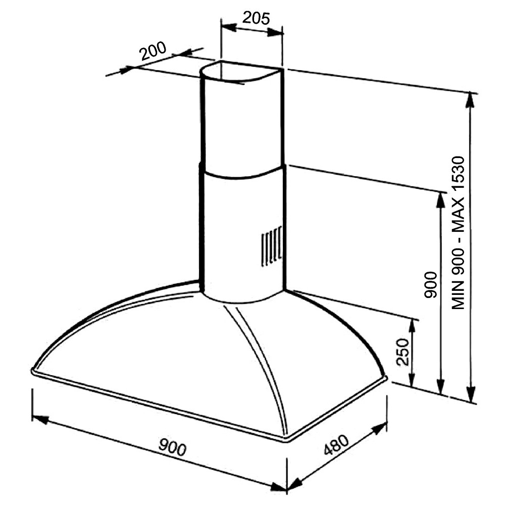 Модель шириной 90 см из коллекции Coloniale станет достойным дополнением кухни в классическом или кантри-стиле. Вытяжка может устанавливаться на различной высоте над варочной панелью с пятью или шестью конфорками. Минимальное расстояние от газовой варочной панели должно составить 750 мм, а для электрической панели оно может быть несколько меньше — до 650 мм. Сбоку расположены два механических поворотных переключателя, при помощи которых можно выставить скорость всасывания или включить освещение рабочего места. Для работы в режиме отвода с удалением дыма и чада за пределы помещения потребуется присоединение к системе вентиляции посредством воздуховода диаметром 150 мм. Для работы в режиме рециркуляции с возвращением очищенного воздуха в помещение необходимо установить угольный фильтр, устраняющий неприятные запахи — его следует приобрести отдельно. Три жироулавливающих фильтра из металла входят в комплект, они не нуждаются в замене и пригодны для периодического мытья под струей воды или в посудомоечной машине. Устройство отличает высокая производительность — на интенсивной ступени она достигает 788 м3/час, а также энергопотребление высокого класса А.