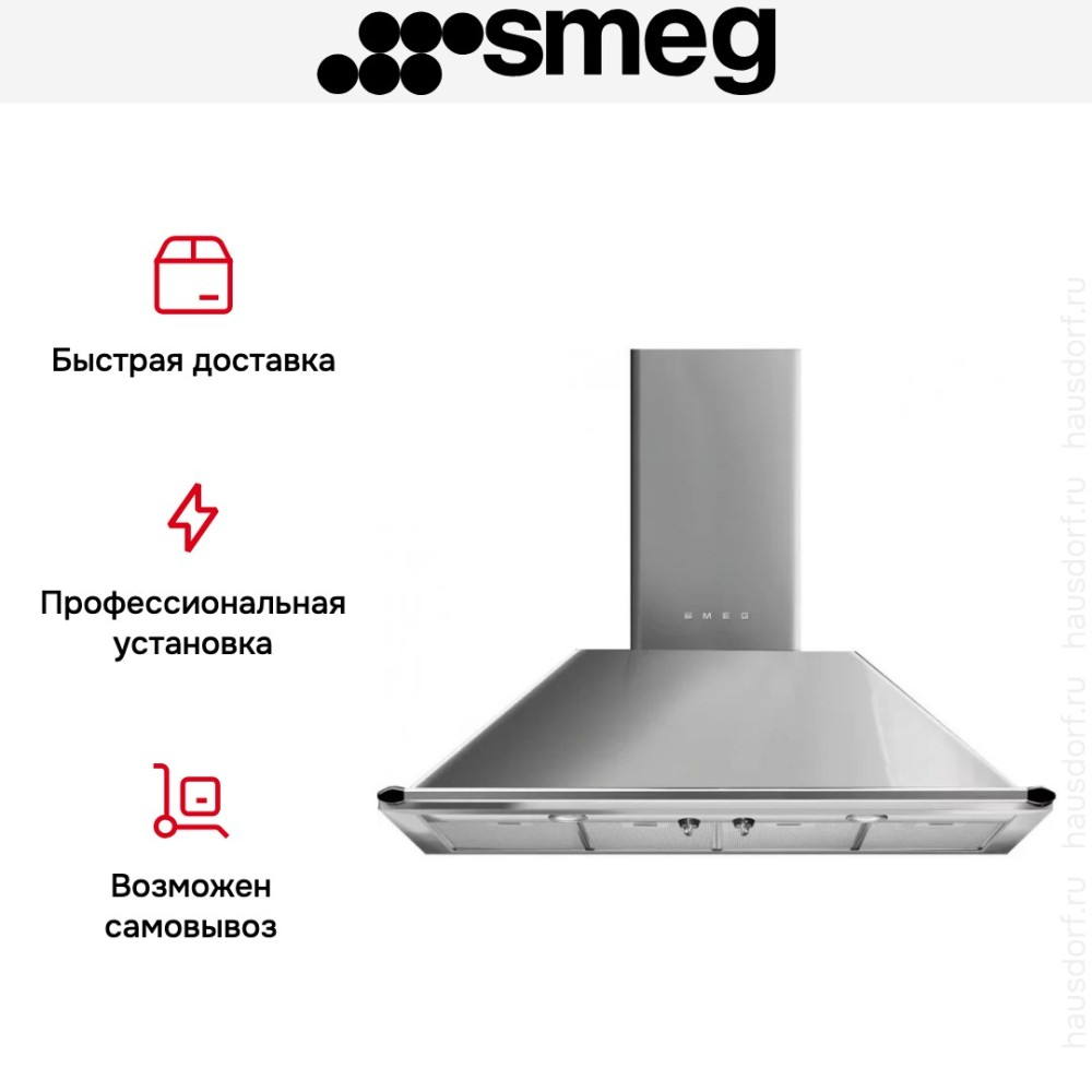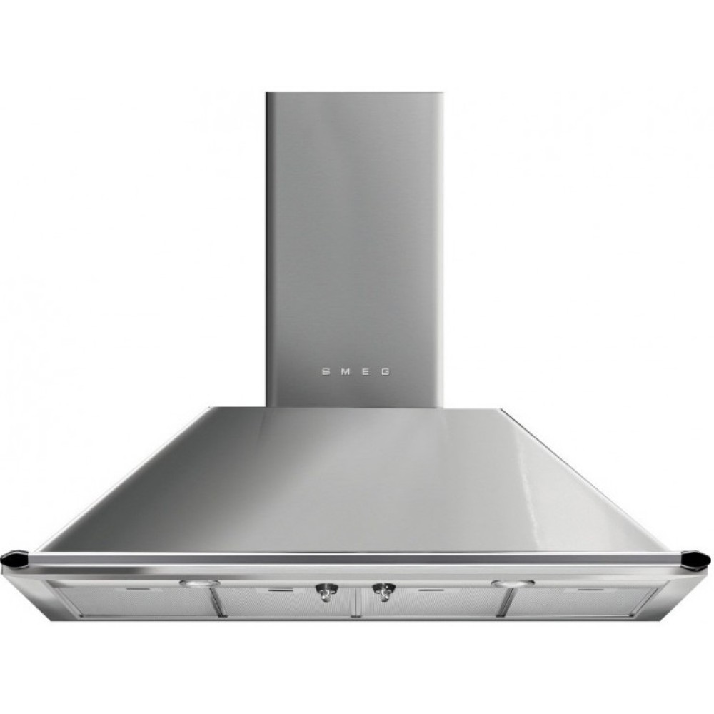 Модель серии Victoria от Smeg шириной 110 см. Поворотные переключатели прибора плавно регулируют режимы работы, а яркое светодиодное освещение исключает необходимость дополнительной подсветки. Алюминиевый жироулавливающий фильтр долговечен и не требует замены.