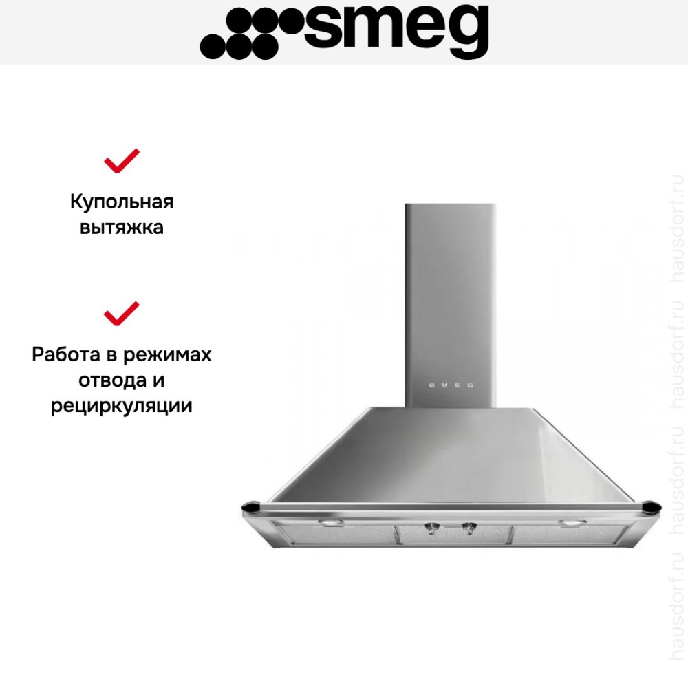Модель серии Victoria от Smeg в неповторимом исполнении. Поворотные переключатели прибора плавно регулируют режимы работы, а яркое светодиодное освещение исключает необходимость дополнительной подсветки. Алюминиевый жироулавливающий фильтр долговечен и не требует замены.
