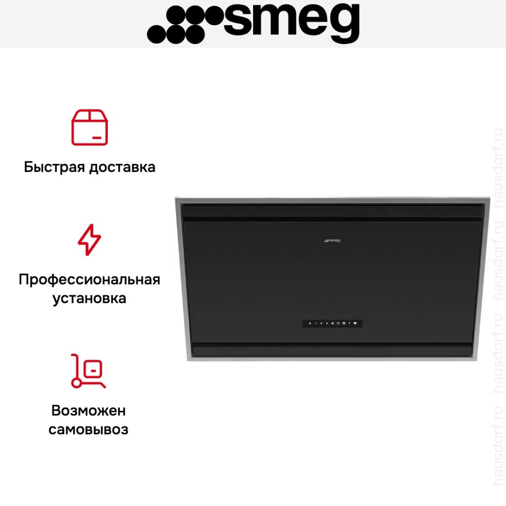 Данная вытяжка крепится на стену и имеет наклонную фронтальную панель, что придает изюминку дизайну и позволяет сохранить свободное рабочее пространство внизу. Обратите внимание на цветовые сочетания модели Smeg KV394MB, чтобы органично вписать ее в свою квартиру. Оттенок корпуса: черный. Благодаря лампочкам, которые расположены на нем, можно освещать плиту и столешницу рядом, чтобы готовить было еще проще и приятнее.