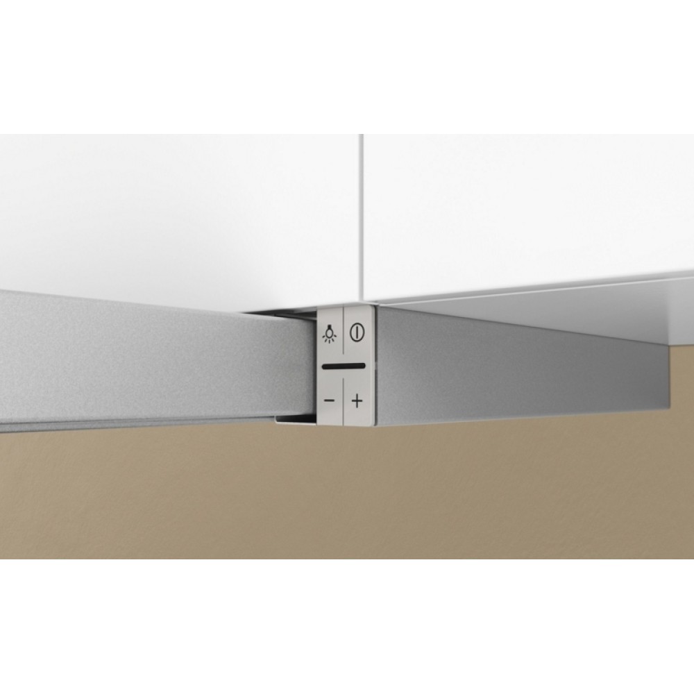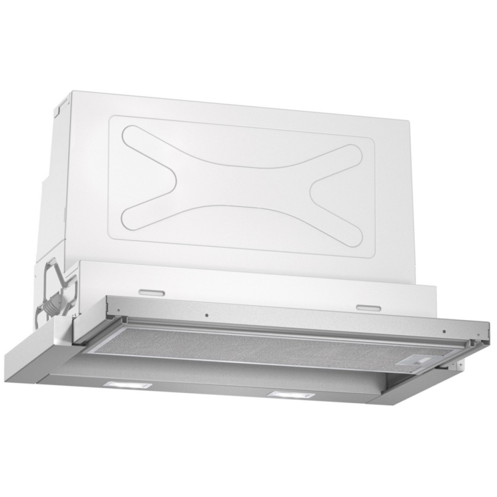 Модель шириной 60 см монтируется над варочной поверхностью с 2-4 конфорками. Серебристый корпус имеет выдвижной экран с возможностью установки декоративной планки, который увеличивает площадь всасывания загрязненного воздуха. Вытяжка включится автоматически при выдвижении экрана. Максимальная производительность 740 м3/ч — ее достаточно для эффективного удаления загрязнений в большом помещении. Благодаря бесщеточному BLDC-мотору Efficient Drive устройство работает очень тихо: уровень шума на первой скорости составит всего 43 дБ, а на максимальной — 55 дБ.