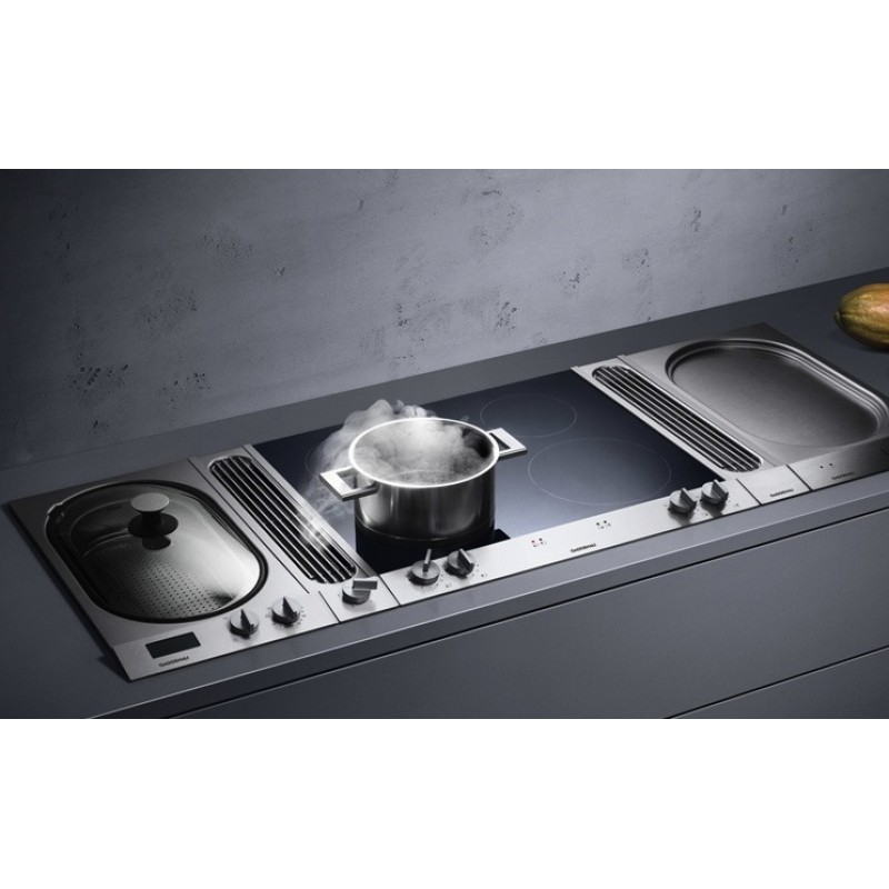 Встраиваемая вытяжка — выбор тех, кто хочет максимально задекорировать технику, или владельцев маленькой кухни. Тип встраивания: в стол. Обратите внимание на цветовые сочетания модели Gaggenau VL 040-114, чтобы органично вписать ее в свою квартиру. Оттенок корпуса: нержавеющая сталь.