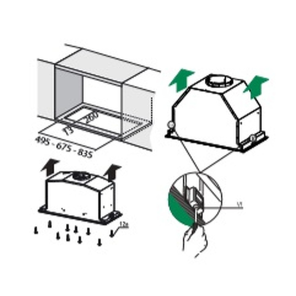 | Возможность установки угольного фильтраДа | Габариты ниши для встраивания (ВхШхГ), см33х49.2х26 | Диаметр воздуховода (мм)150 |