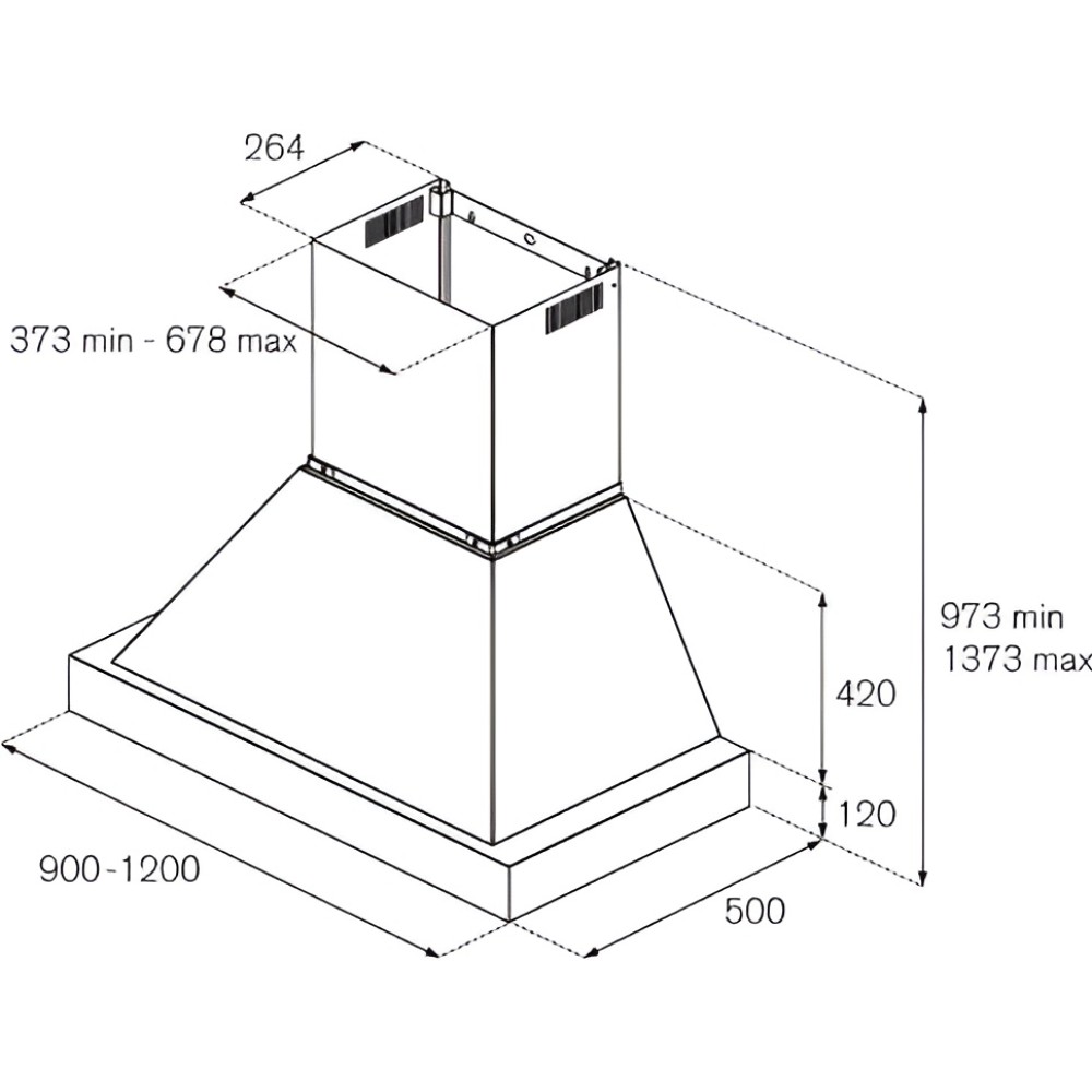 Ширина корпуса составляет 90 см, что делает устройство идеальным спутником для широких варочных поверхностей, включая профессиональные газовые или индукционные панели. Глубина в 50 см обеспечивает полное перекрытие рабочей зоны, а компактная высота — всего 42 см — позволяет монтировать вытяжку даже в помещениях с ограниченным пространством между плитой и навесными шкафами. Благодаря продуманным пропорциям, модель гармонично вписывается в интерьеры как в классическом, так и в современном стиле, становясь центральным элементом кухонного ансамбля.