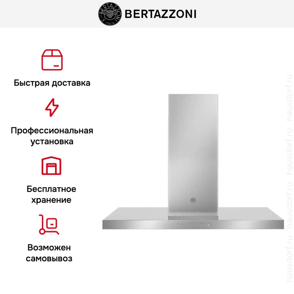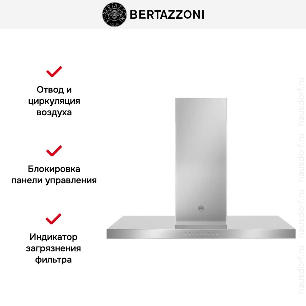 Bertazzoni KTI120P1AXT — островная вытяжка из серии Professional шириной 120 см и высотой от 76 до 110 см. Такие габариты позволяют установить эту модель над кухонным островом с 6 и более зонами нагрева в помещении с высокими потолками. Эффективной очистке воздуха в кухне большой площади способствует и максимальная производительность 750 м3/час. Корпус изготовлен из нержавеющей стали, для освещения рабочей зоны служат 4 светодиодные лампы. Вытяжка может работать в режимах отвода воздуха и рециркуляции. При помощи кнопок механической панели управления можно задавать одну из 3 скоростей работы, выбирать интенсивный режим или режим поддержания свежести воздуха «24 часа». Имеется возможность установки таймера с отключением. В комплект входит стальной жироулавливающий фильтр с возможностью мытья в посудомойке.
