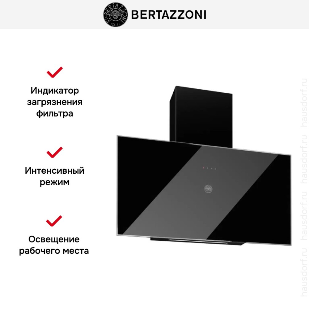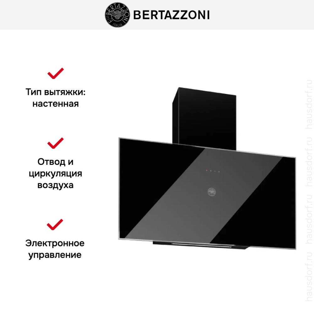 Bertazzoni KV90PRO1NA — настенная вытяжка из окрашенного металла с вертикальным экраном из черного стекла. Ширина 90 см позволяет разместить эту вытяжку над варочной поверхностью с любым количеством конфорок. Максимальная высота 105 см рассчитана на установку в помещении с высокими потолками. Мощный двигатель обеспечивает максимальную производительность 570 м3/ч — она поможет очистить от загрязнений воздух в просторном помещении. Модель предназначается для работы в режимах отвода воздуха через систему вентиляции и рециркуляции с очисткой при помощи системы фильтров. Съемный алюминиевый жироулавливающий фильтр можно мыть в посудомоечной машине. Класс энергопотребления А гарантирует экономичность использования.
