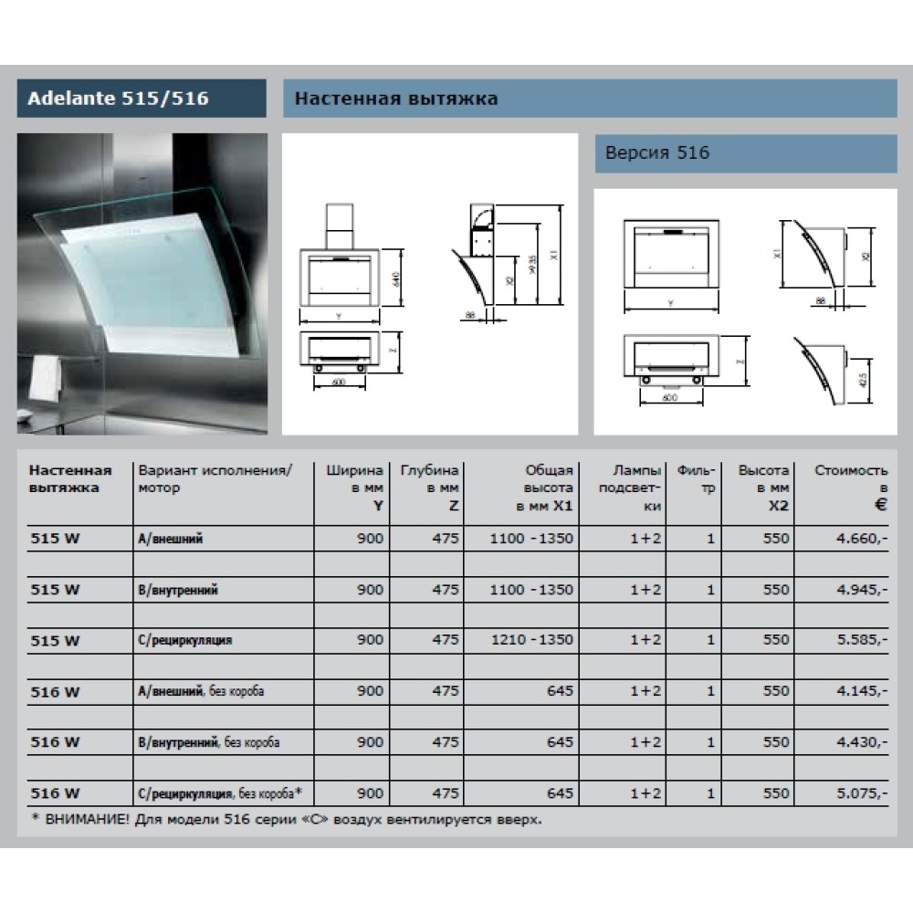 Технические характеристики Вытяжка Gutmann Adelante в Краснодаре