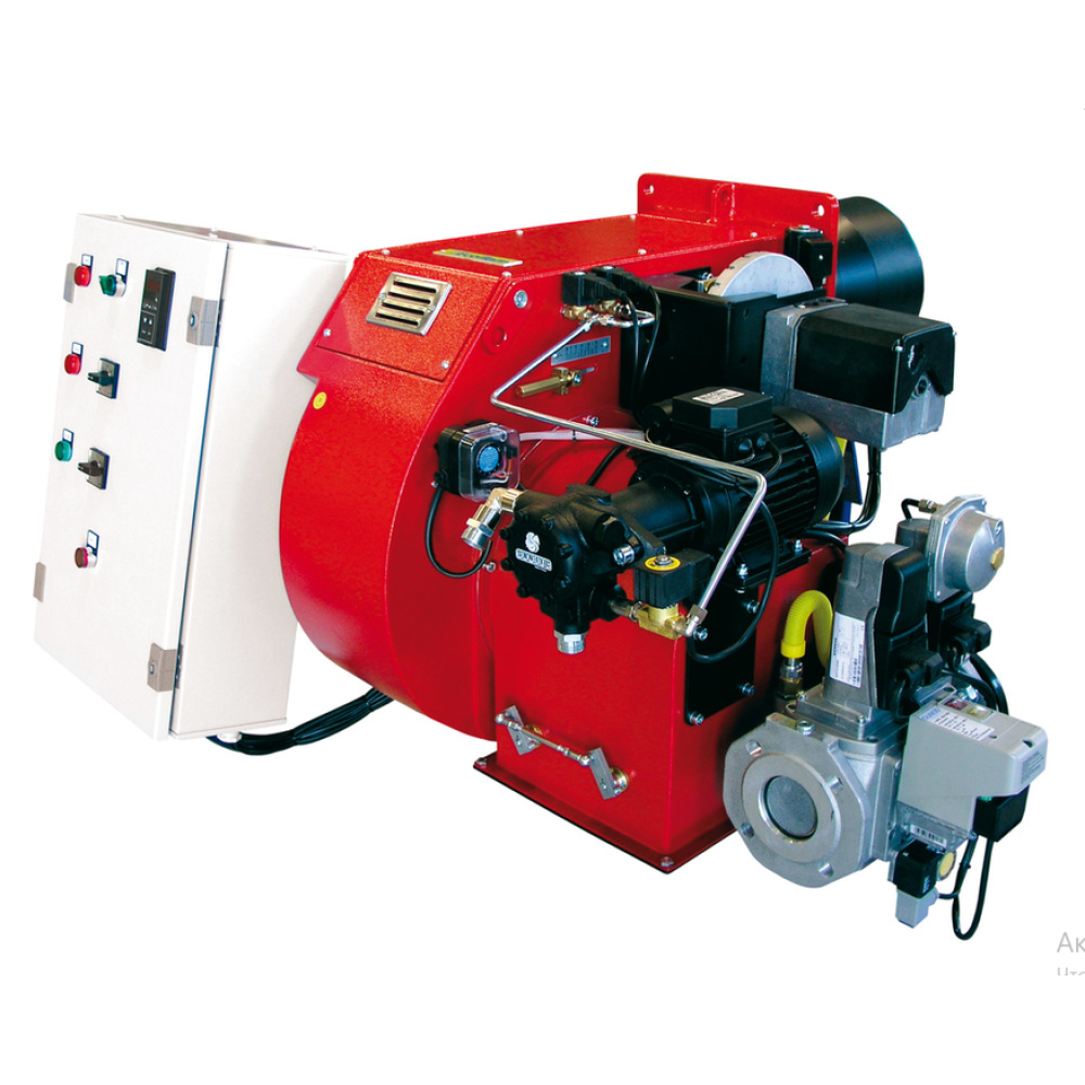 - Двухступенчатые горелки с электроприводом воздушной заслонки и интегрированной системой регулировки расхода воздуха, газа и дизельного топлива