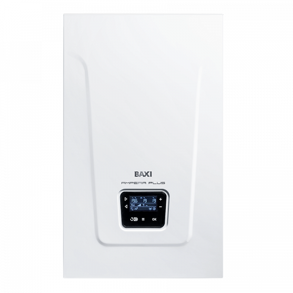 Электрический котел BAXI AMPERA Plus – это современная мини-котельная, которая включает: расширительный бак, насос и группу безопасности. Модельный ряд начинается с котлов мощностью 6 и 9 кВт, они могу быть как однофазными, так и трехфазными. Модели от 12 до 36 кВт поставляются в трёхфазном исполнении. Одним из ключевых усовершенствований в новых моделях является улучшенная модуляция мощности. Количество ступеней модуляции BAXI AMPERA Plus зависит от мощности котла. Модели мощностью 6 кВт имеют 3 ступени, модели от 9 до 24 кВт - 6 ступеней, а модели от 30 до 36 кВт - 9 ступеней. Это позволяет более точно регулировать мощность котла в соответствии с потребностями, что обеспечивает экономию энергопотребления и повышает комфорт и безопасность. AMPERA Plus оснащен разъемом OpenTherm и дин-рейкой внутри котла для быстрой и удобной установки системы удаленного управления BAXI Connect+.