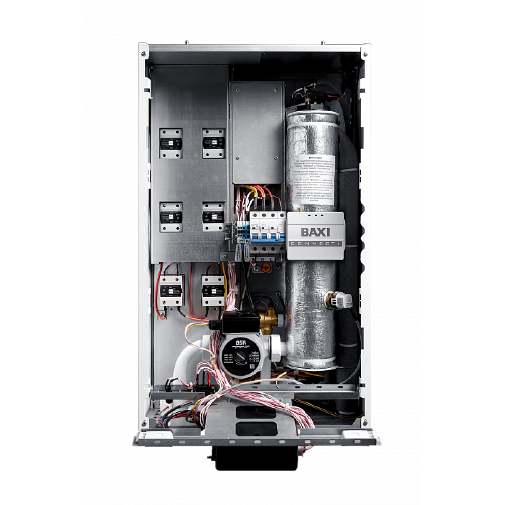 Главная особенность электрического котла BAXI AMPERA Pro - в нем используются твердотельные реле с воздушными охлаждением. Применение данной технологии дает большое количество преимуществ: гораздо больший эксплуатационный ресурс, высокое быстродействие, отсутствие механической контактной группы, бесшумность, гальваническая развязка от управляющей цепи и высокая надежность. Модельный ряд начинается с котлов мощностью 9 кВт, они могу быть как однофазными, так и трехфазными. Модели от 12 до 45 кВт поставляются в трёхфазном исполнении. Еще одним преимуществом котлов AMPERA Pro является улучшенная модуляция мощности. Модели от 9 кВт до 24 кВт имеют 6 ступеней модуляции мощности, а модели от 30 до 45 кВт - 9 ступеней. Это позволяет более точно регулировать мощность котла в соответствии с потребностями, что обеспечивает экономию энергопотребления и повышает комфорт и безопасность. AMPERA Pro оснащен разъемом OpenTherm и дин-рейкой внутри котла для быстрой и удобной установки системы удаленного управления BAXI Connect+.